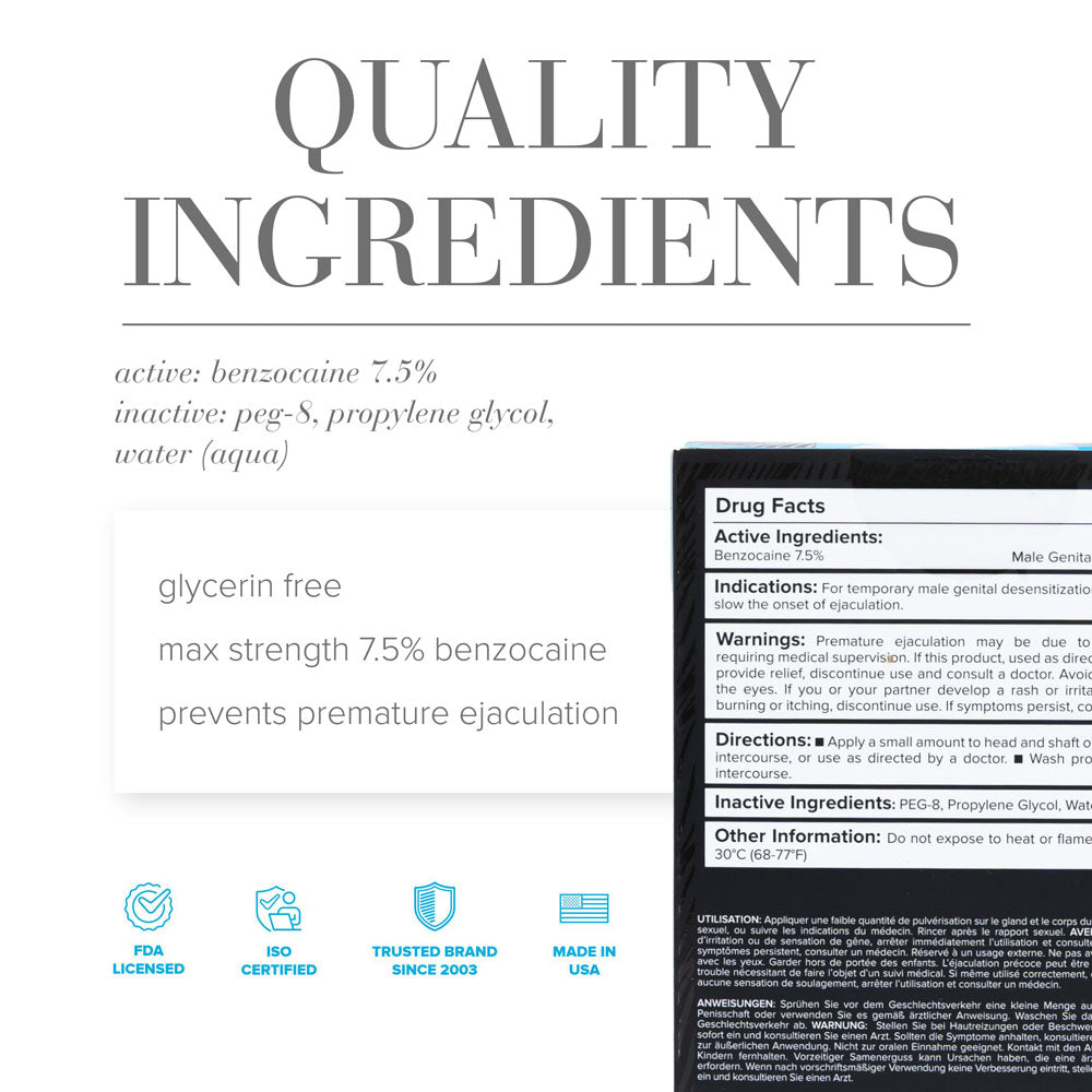 JO Prolonger Spray is perfect for extended play and allows you to enjoy every single stroke together. Formulated using the maximum strength, our fast-acting, quick-drying spray allows you to last longer for more pleasure and a closer connection.