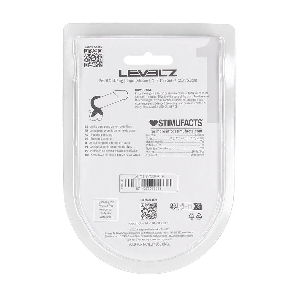 LEVELZ Pencil Liquid Silicone Cock Ring - Black