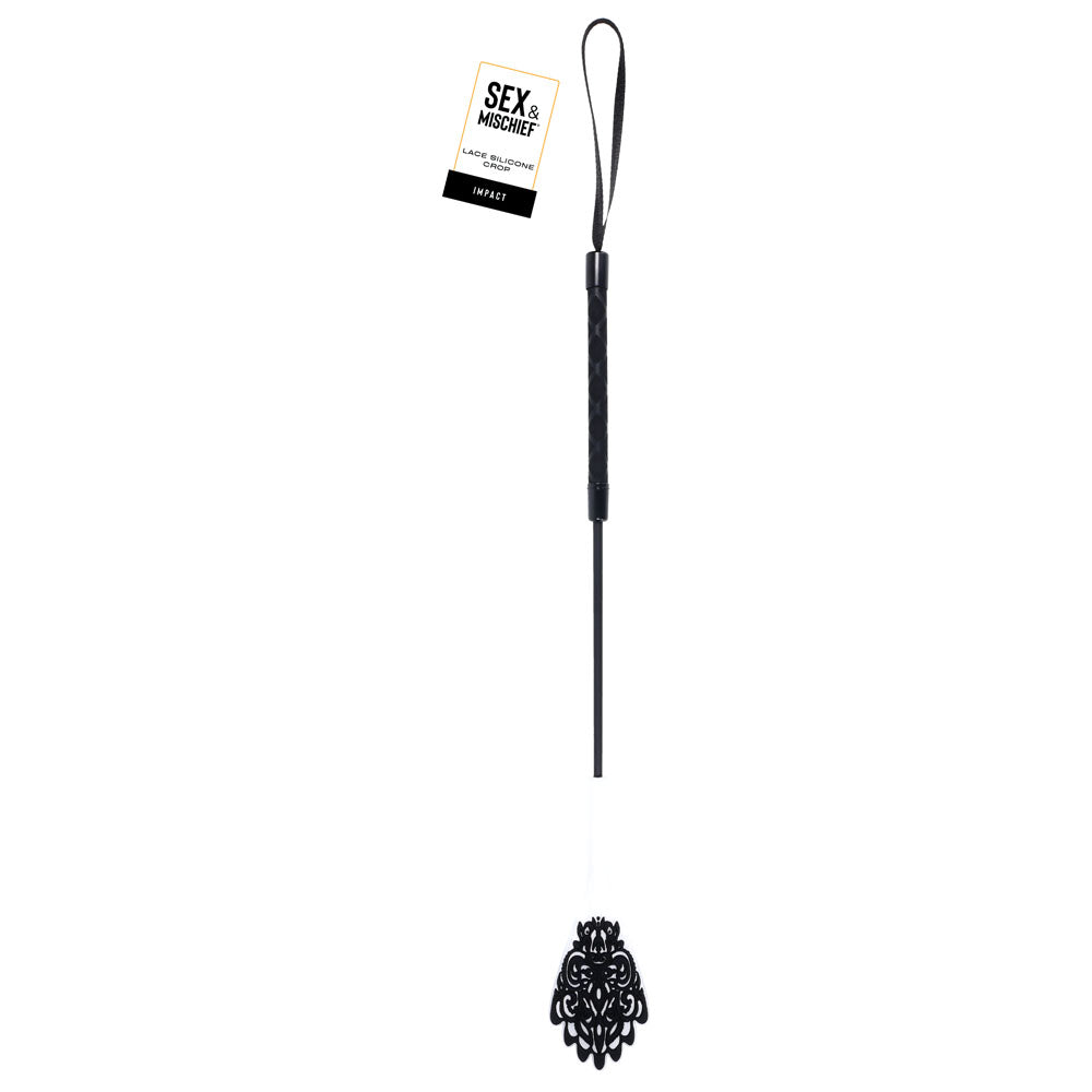 Sex & Mischief Lace Silicone Crop - Black/White 50cm Whip